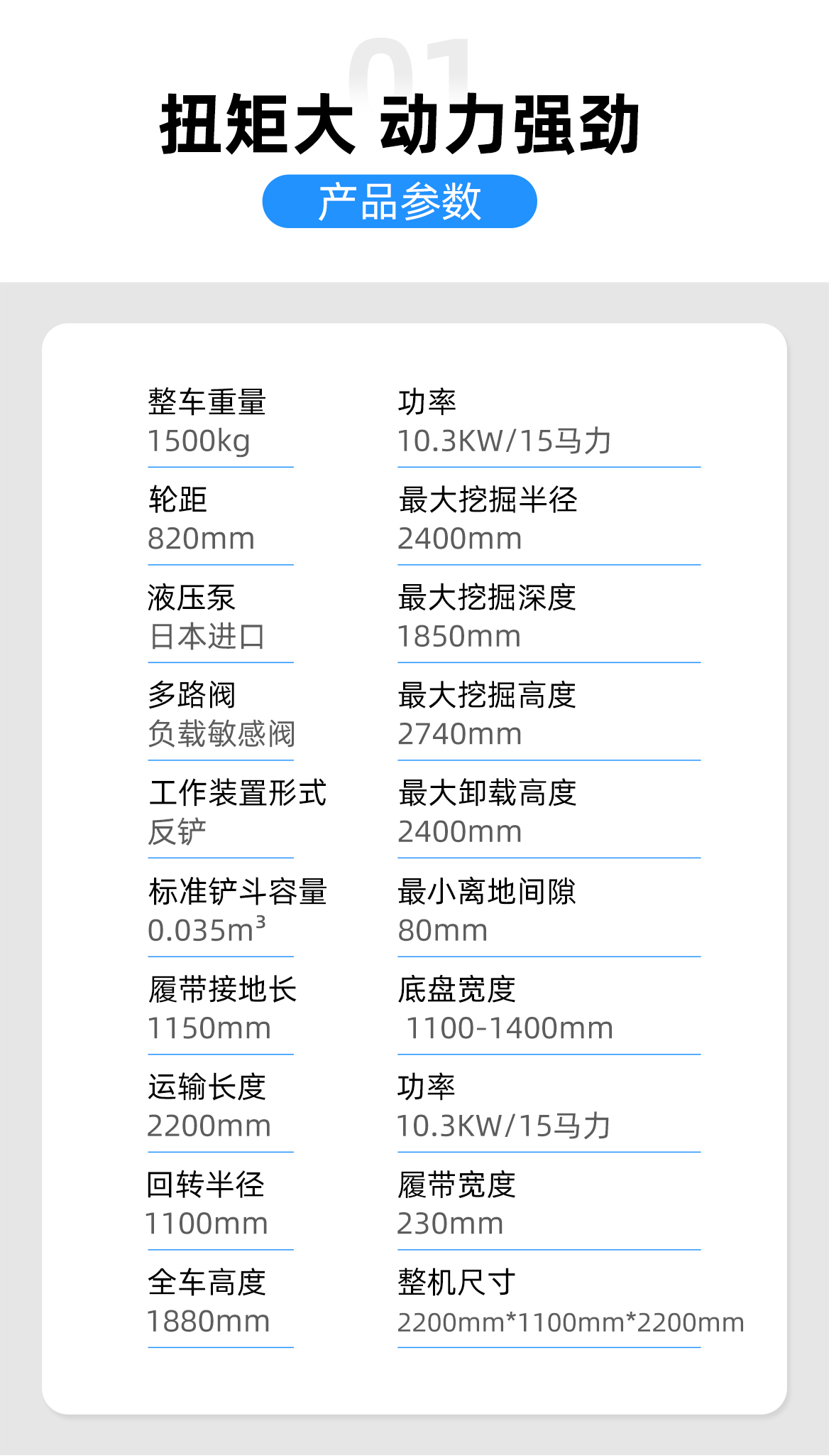 標準鏟斗容量0.035m3履帶接地長1150mm